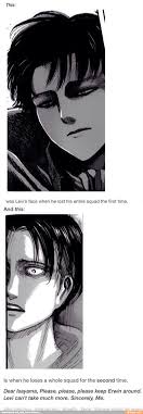 Eren is more mature in the manga and he loses the kill all titans mentality pretty early. 10 best quotes of ymir. While on the expedition levi sees a soldier caught in the jaws of a nearby titan and kills it.